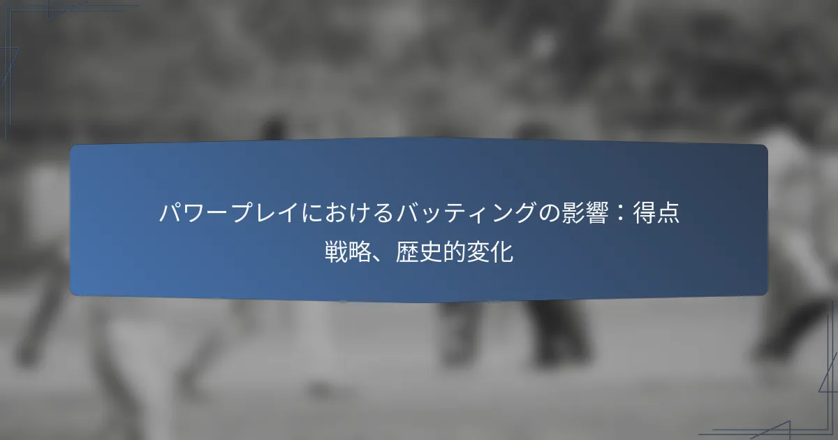 クリケットにおけるパワープレイは、チームがフィールド制限を利用して攻撃的な得点戦略を採用する重要なフェーズです。年々、この期間のバッティング戦術は保守的なアプローチからよりダイナミックでリスクを取る方法へと進化しており、ルールや選手の能力の変化を反映しています。これらの戦略を効果的に活用するチームは、特に初期のオーバーでの得点を最大化することで、全体的なパフォーマンスにおいて大きな利益を得ることが多いです。