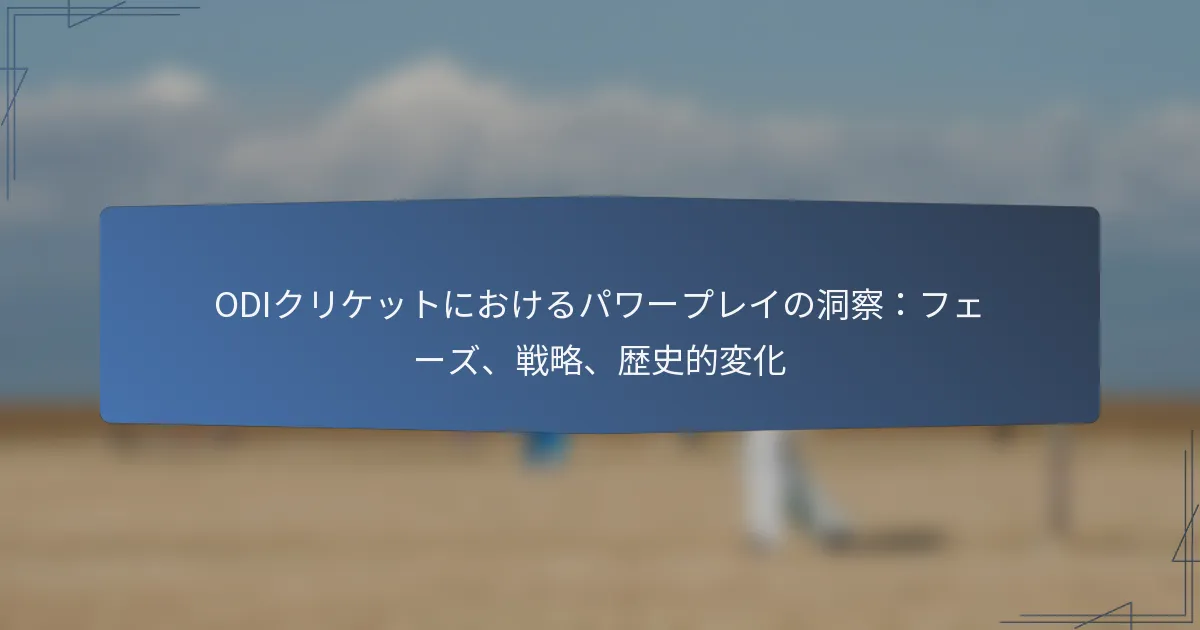 ODIクリケットにおけるパワープレイのフェーズは、フィールド制限が適用される特定のオーバーであり、ゲームのダイナミクスに大きな影響を与えます。これらのフェーズは攻撃的なバッティングと戦略的なボウリングを促進し、試合の全体的な結果を形作ります。