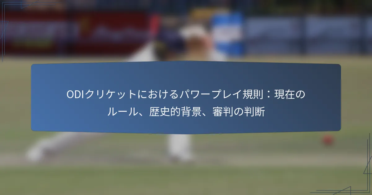 ODIクリケットにおけるパワープレイは、特定のフィールド制限を課す指定されたオーバーであり、チームが採用する戦略に大きな影響を与えます。これらの規則は導入以来進化し、バットとボールの間でよりバランスの取れた競争を生み出すことを目的としており、審判はルールを施行し、試合の競技的な整合性を維持する重要な役割を果たしています。